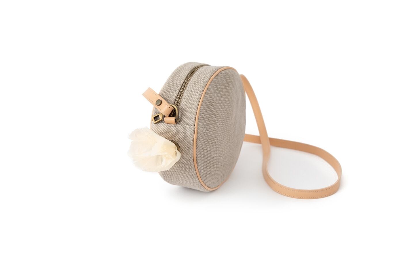 ラウンドバッグのサイズは、W19 x H7 cmです。
