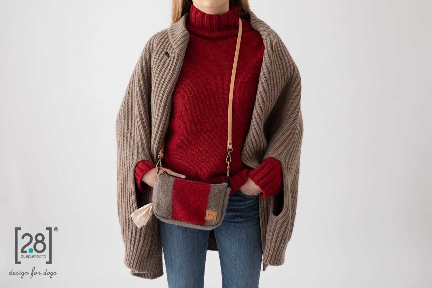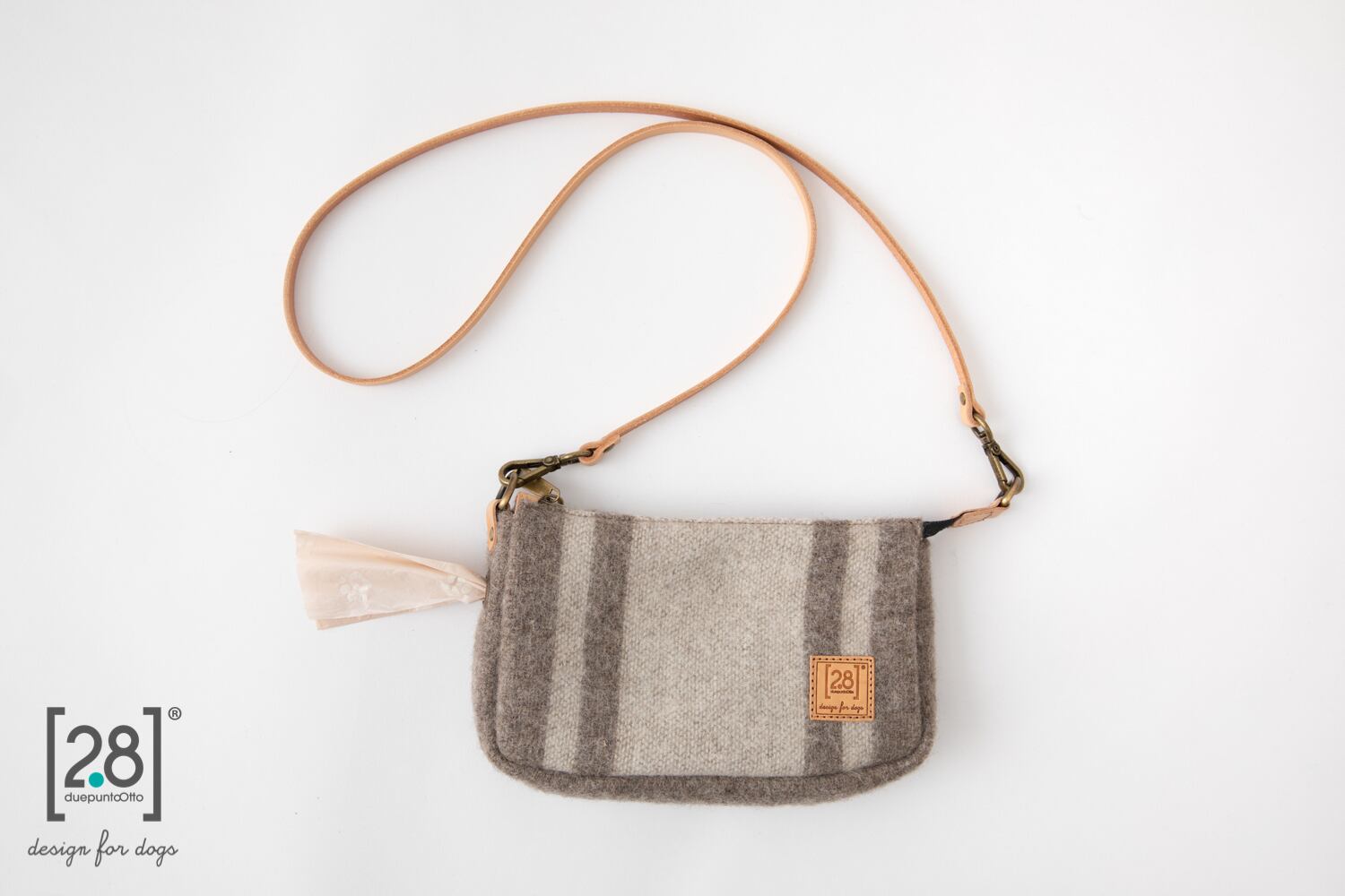 こちらのバッグは、伝統のあるトスカーナの職人技と、環境への持続可能性の2つを融合させて生み出された、リサイクルウールで作られています。愛犬用プーバッグ(トイレ袋)を収納できる部分が付いており、携帯電話、鍵などの小物類も収納することが可能です。本革のレザーハンドルは、時間の経過とともに自然に色が濃くなり、柔らかくなります。