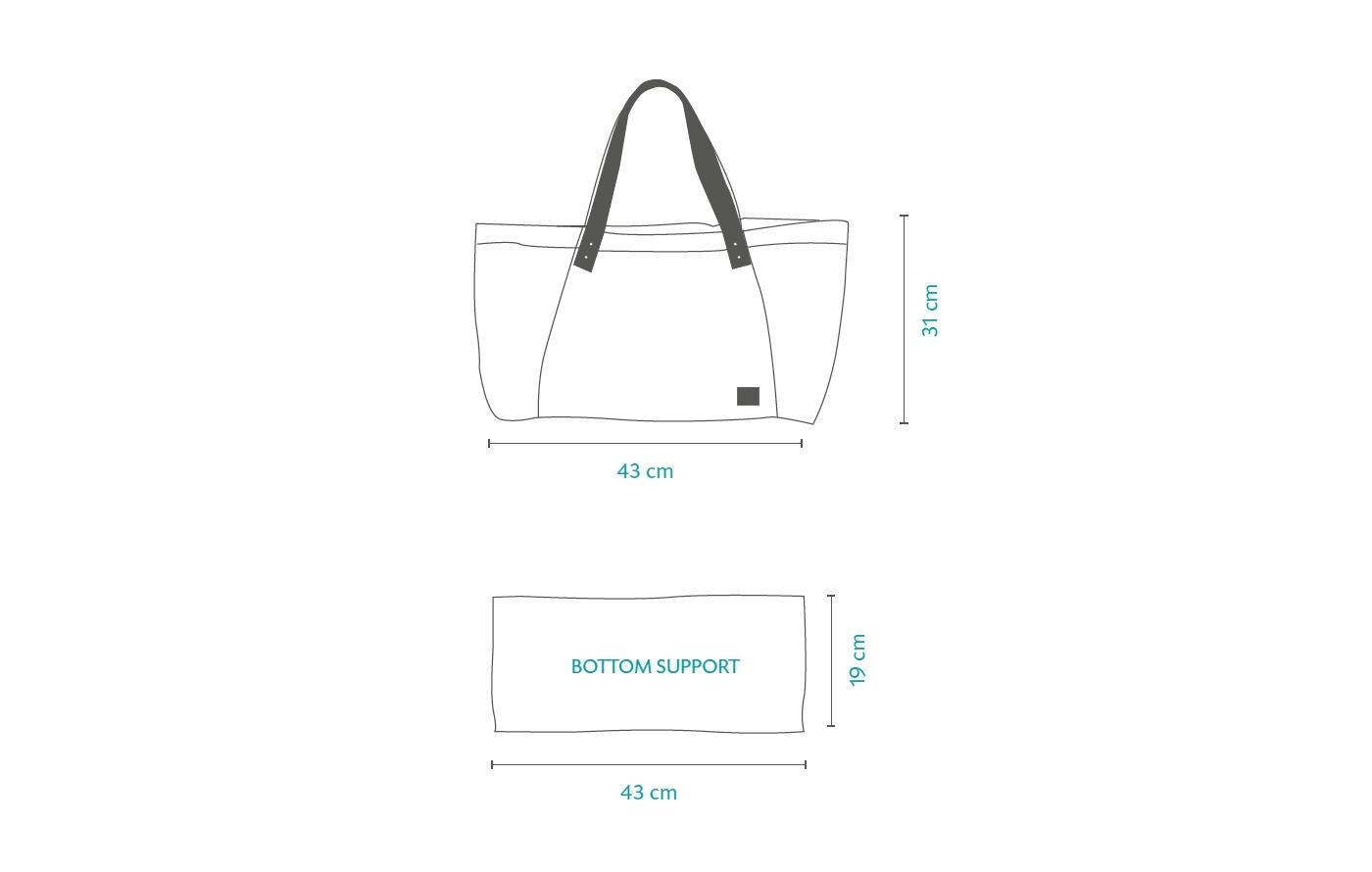 バッグのサイズは、55(上部)×19(奥行き)×31(高さ)×43(底) cmです。