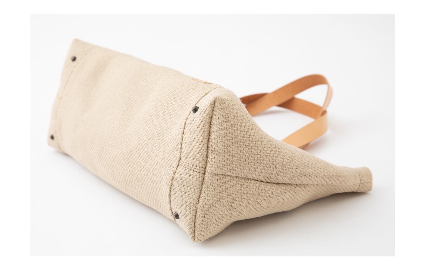 保護用の底鋲が、バッグの汚れを防ぎます。本革のレザーハンドルは、時間の経過とともに自然に色が濃くなり、柔らかくなります。またバッグ内側には、愛犬の飛び出し防止用のカラビナクリップが付いています。