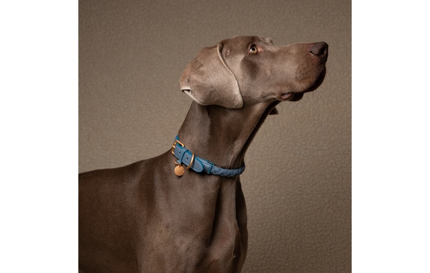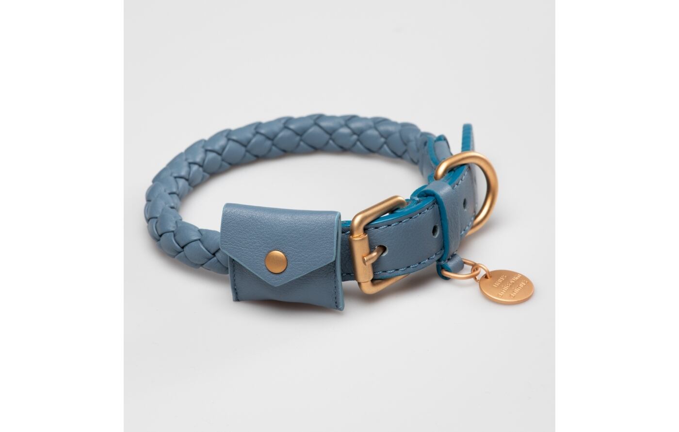 【犬用首輪】Ferdinando - Braider Leather Collar - Dusty blue