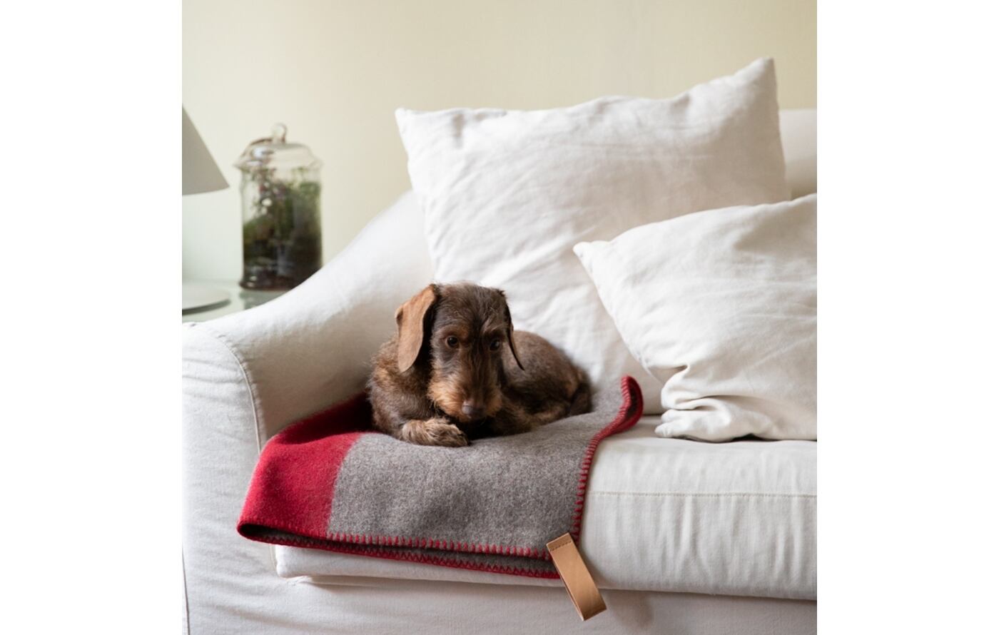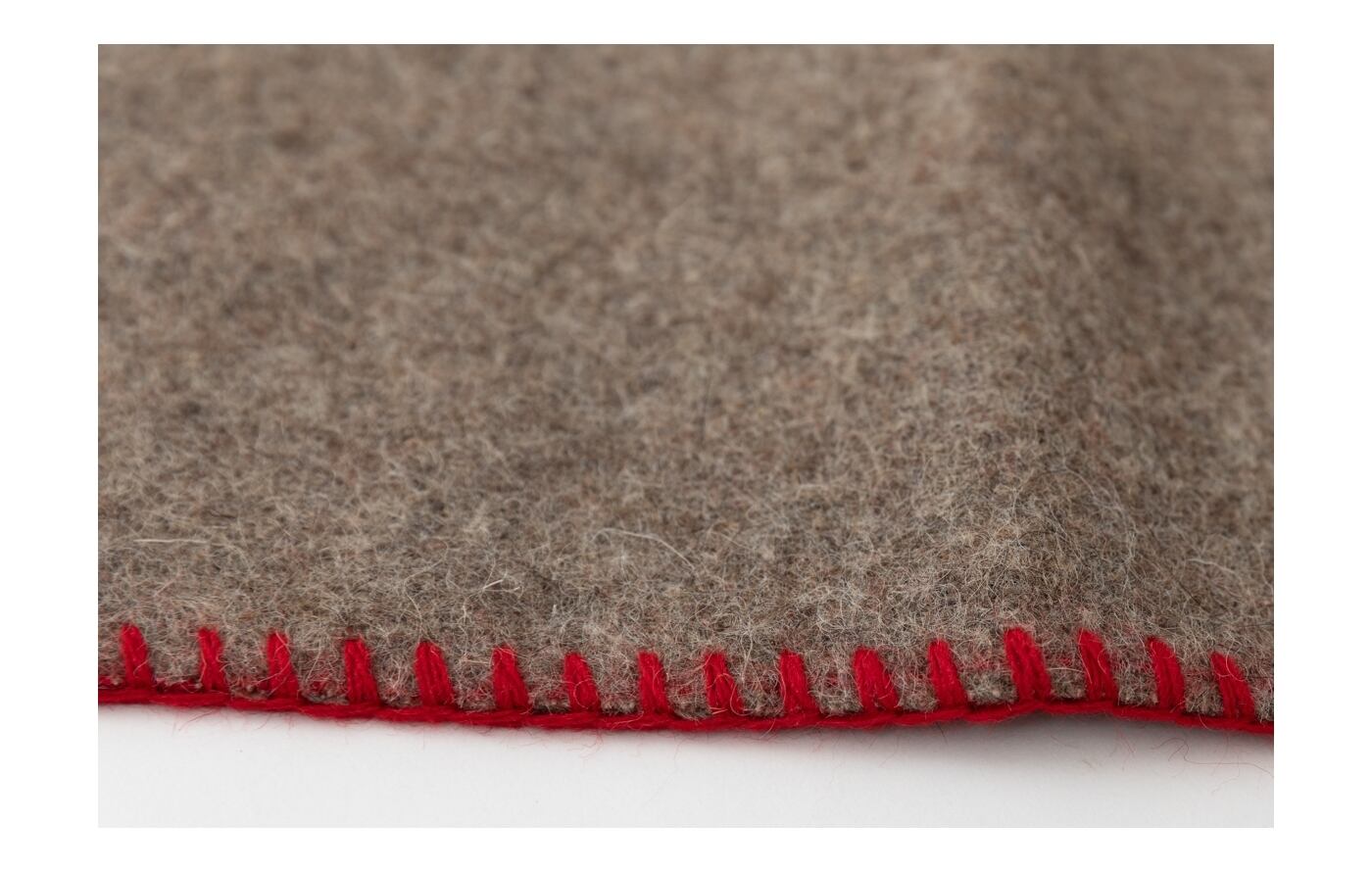 こちらのブランケットは、100%リサイクルウール(環境への影響を軽減し、エネルギーと資源を節約するために特別に製造された生地)で作られており、寒い季節には最適です。本革の持ち手は、時間の経過とともに自然に色が濃くなり、柔らかくなります。