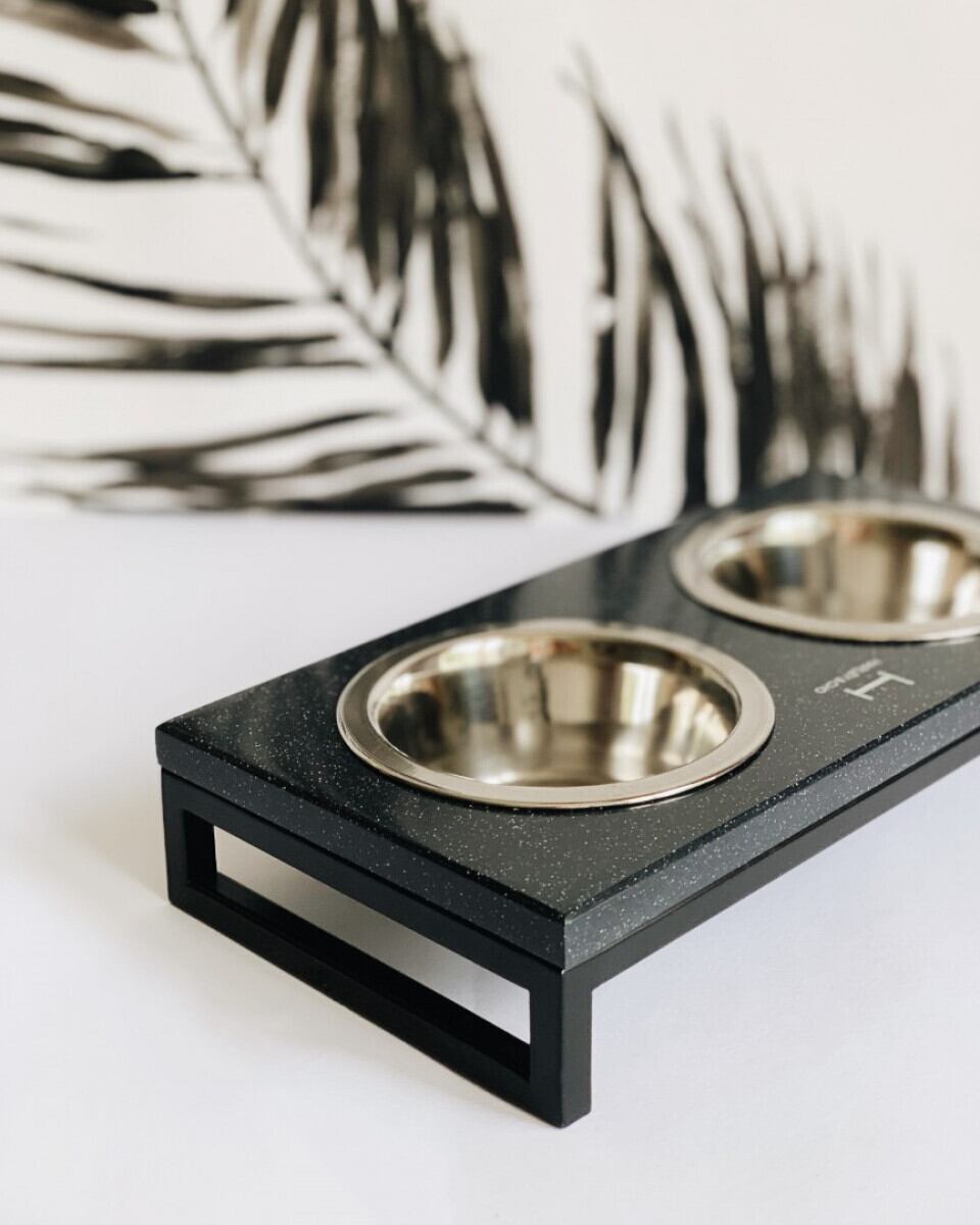 【フードボウルスタンド-ボウル2個付き】 Lunch Bar Stone + フレームブラック - XSサイズ