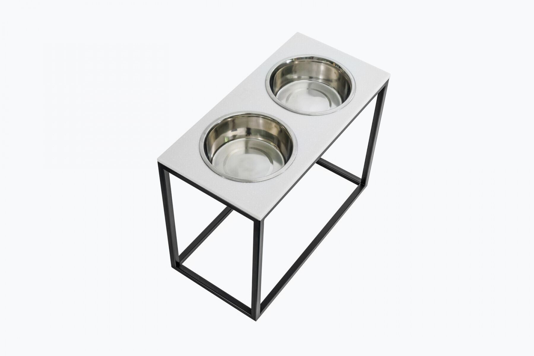 モダンな空間を演出する人工石のテーブルボード(天板)が、オシャレで、インテリアに合う、デザイン性と機能性を兼ね備えた、フードボウルスタンドです。
